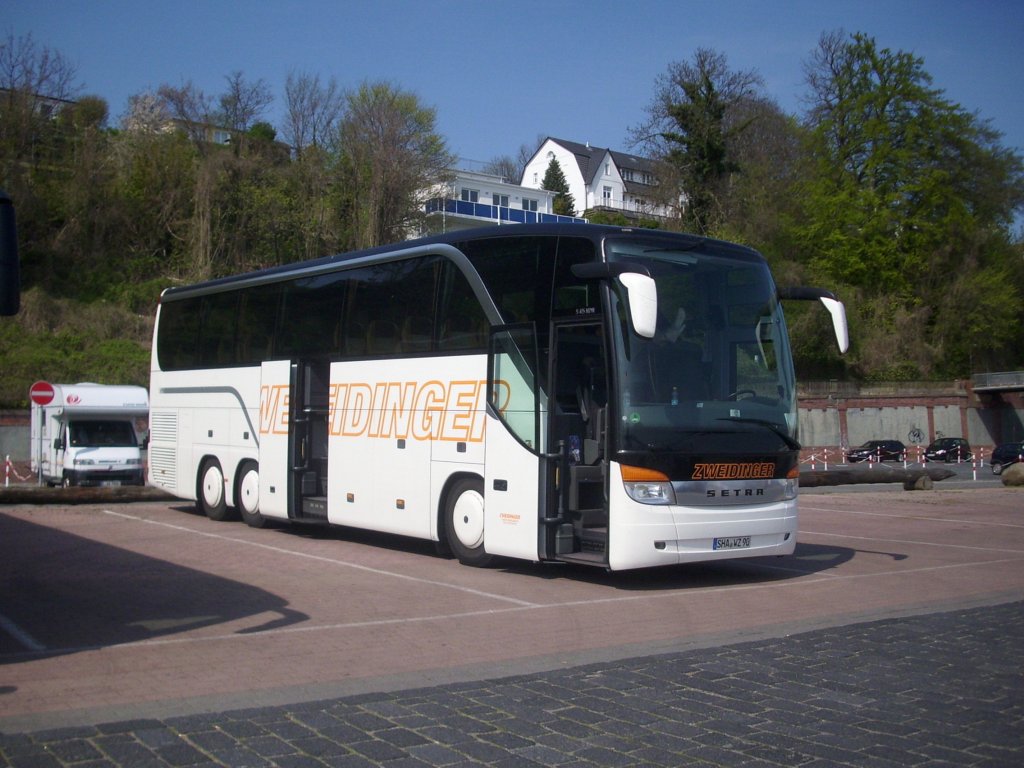 Setra 416 HDH von Zweidinger aus Deutschland im Stadthafen Sassnitz am 03.05.2012