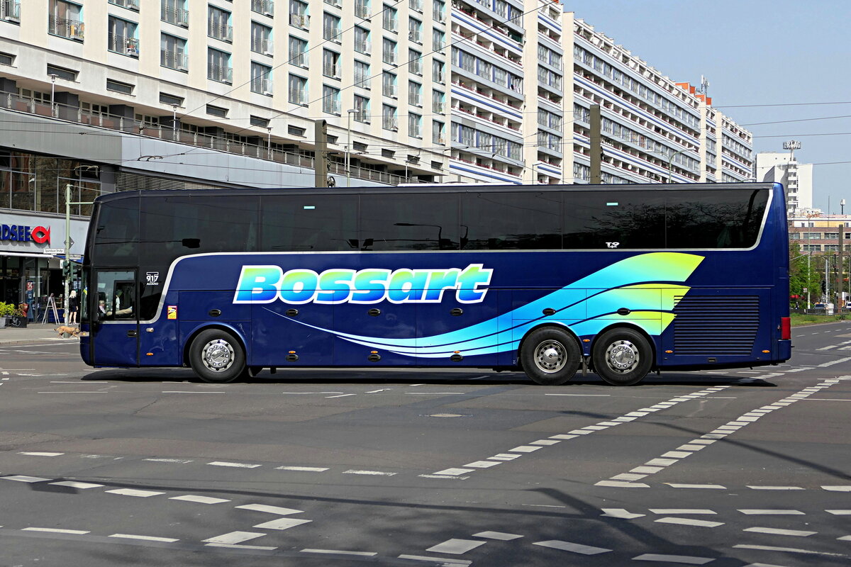 Van Hool Reisebus "TD925 Astromega" der Fa. Grindler Autocars, Vif (bei Grenoble), Frankreich, abgestellt am 11.05.2013 in Herdorf.