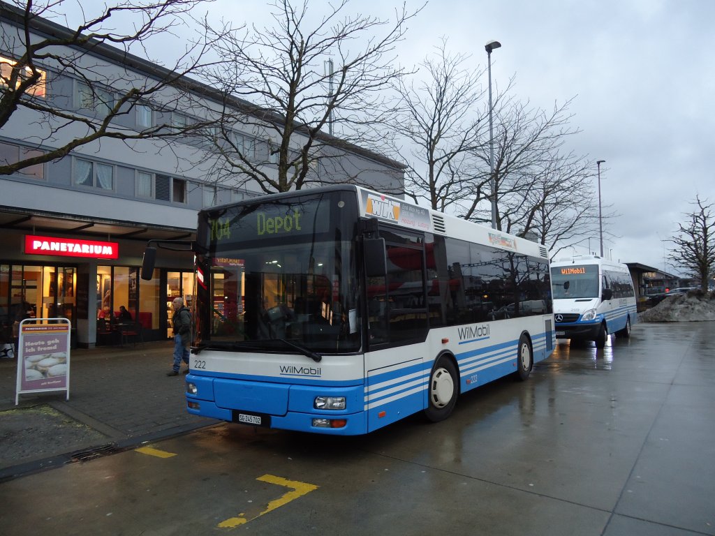 WilMobil, Wil - Nr. 222/SG 245'702 - MAN/Göppel (ex Wick, Wil Nr. 2) am 12. Januar 2011 beim Bahnhof Wil