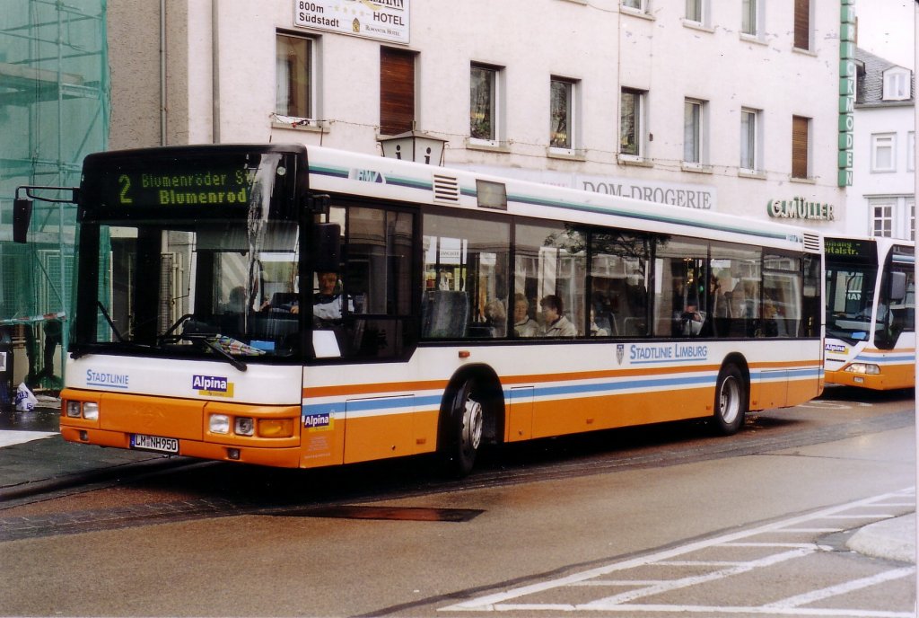 LM-NH 950 Alpina, Limburg in Stadtlinien-Lackierung am 19.04.2005, Haltestelle Hospitalstrasse