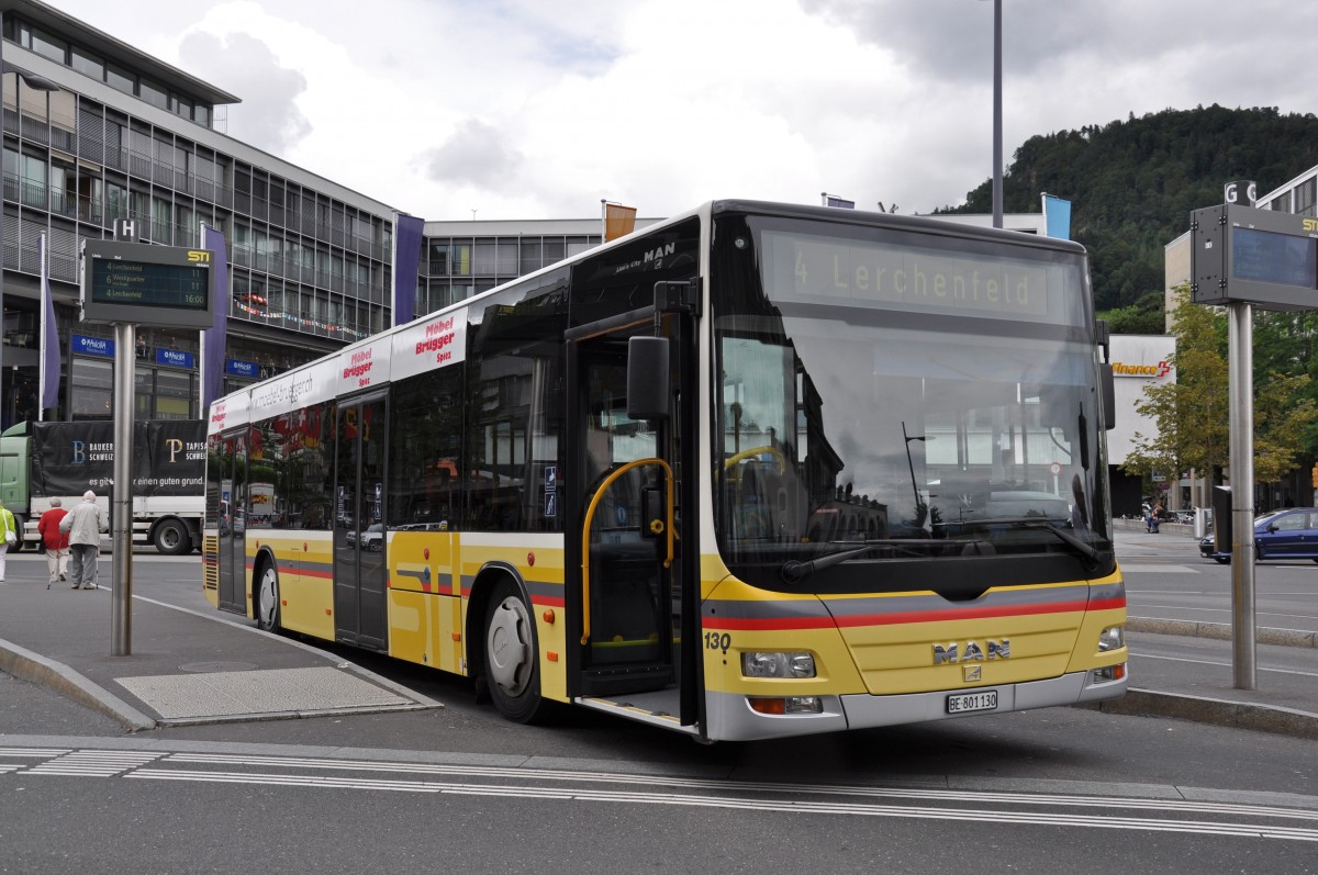 MAN Lions City 130 auf der Linie 4 am Bahnhof Thun. Die Aufnahme stammt vom 29.07.2014.