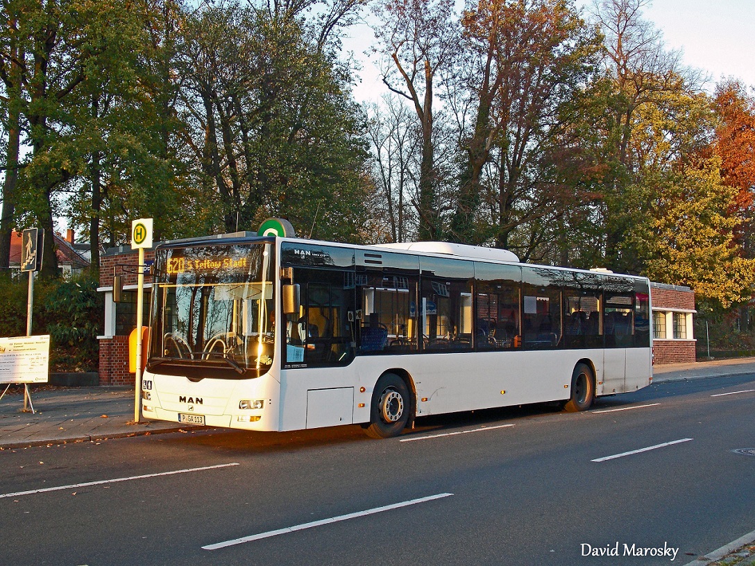 30 November 2013 - P-GA 113 (MAN NL273 Lion`s City) steht am 30.11.2013 am S Wansee in Berlin um nach Teltow (Stadt) aufzubrechen.