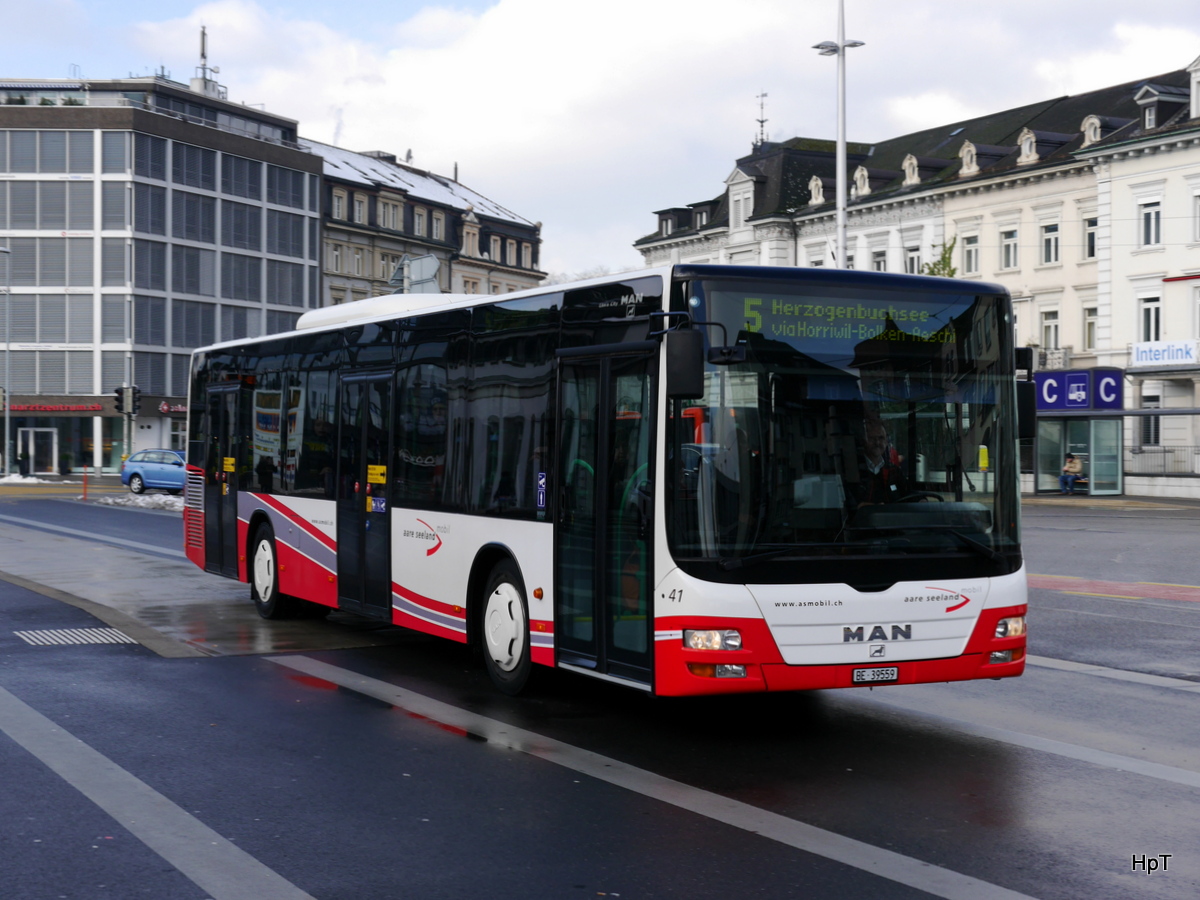 asm Oberaargau - MAN Lion`s City  Nr.41  BE  39599 unterwgs auf der Linie 5 vor dem Bahnhof in Solothurn am 23.01.2016