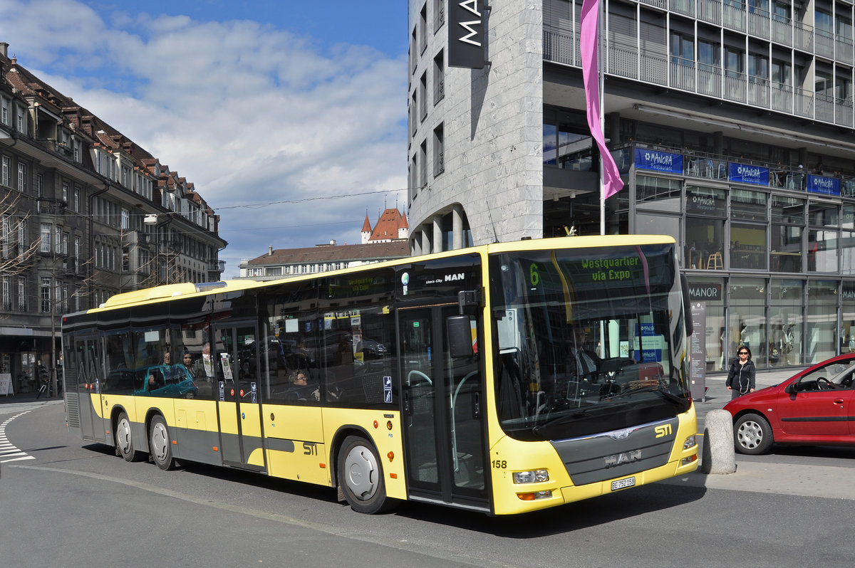 MAN Lions City 158, auf der Linie 6, fährt zur Haltestelle beim Bahnhof Thun.