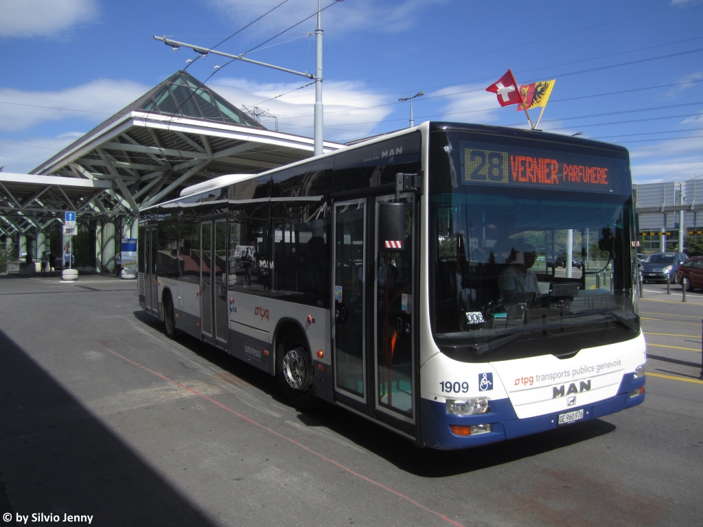 tpg/Globe Limo SA Nr. 1909 (MAN A21 Lion's City) am 4.8.2017 beim Flughafen Genf