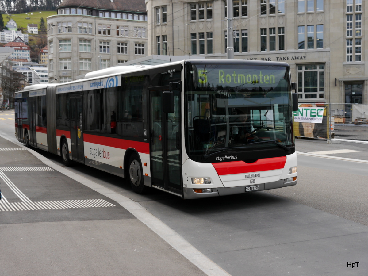 VBSG - MAN Lion`s City  Nr.295  SG  198295 unterwegs auf der Linie 5 vor dem Bahnhof bei den Bushaltestellen in St.Gallen am 09.03.2018