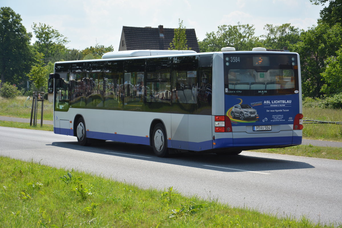 Am 04.06.2016 fährt P-AV 584 für die ILA 2016 auf der Shuttle Linie "L". Aufgenommen wurde ein MAN Lion's City.