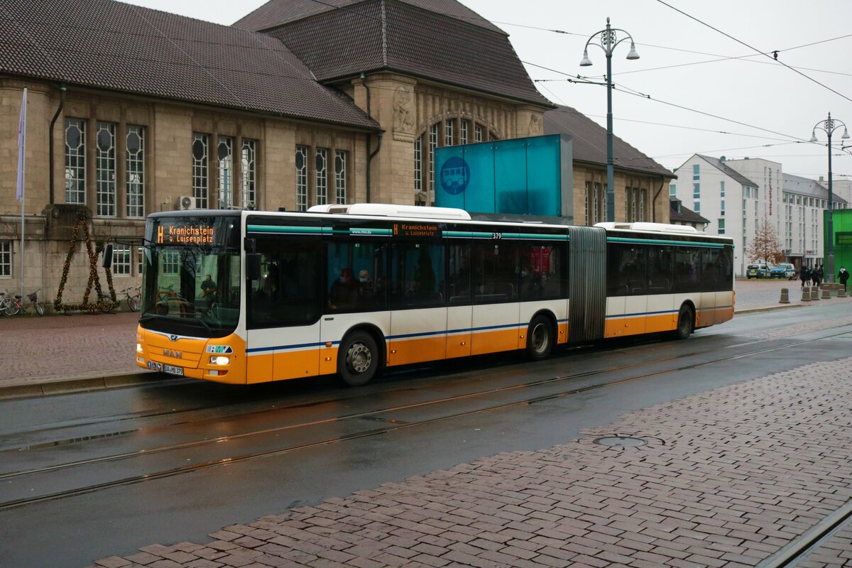 HEAG Mobilo MAN Lions City G Wagen 379 am 04.12.21 in Darmstadt Hbf