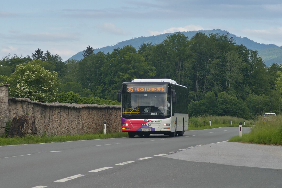 MAN Lion's City von Albus Salzburg (S-417 TZ) als Linie 25 bei der Haltestelle Glanegg Schloss. Aufgenommen 1.6.2022.