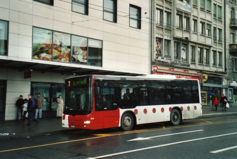 TPF Fribourg Nr. 350/FR 300'418 MAN am 14. Februar 2009 Fribourg, Bahnhof