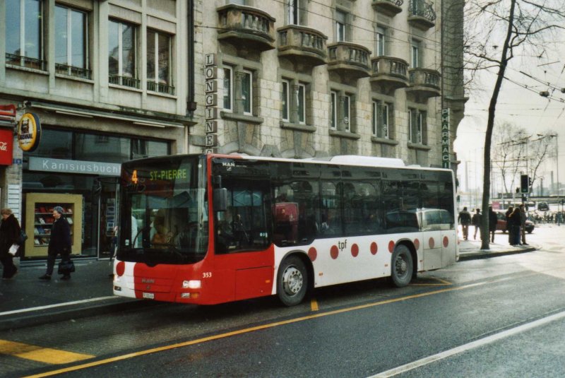 TPF Fribourg Nr. 353/FR 300'404 MAN am 14. Februar 2009 Fribourg, Bahnhof