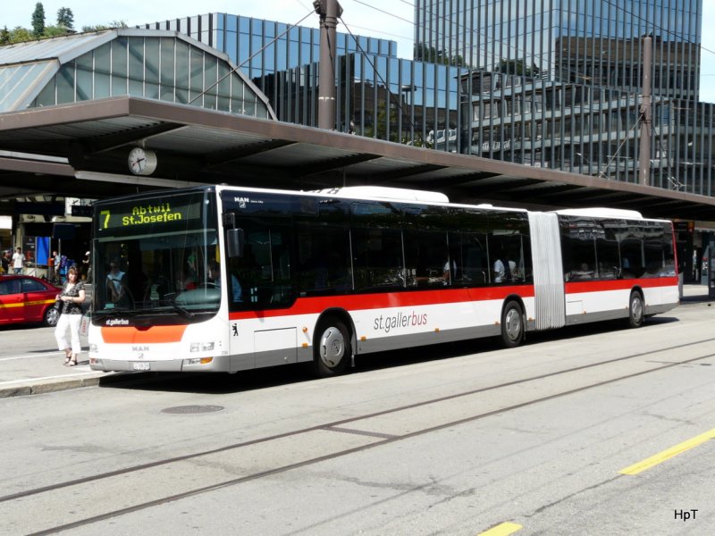 VBSG - MAN Lion`s City Bus Nr.298 SG 198298 unterwegs auf der Linie 7 bei den Haltestellen vor dem Bahnhof St.Gallen am 16.08.2009