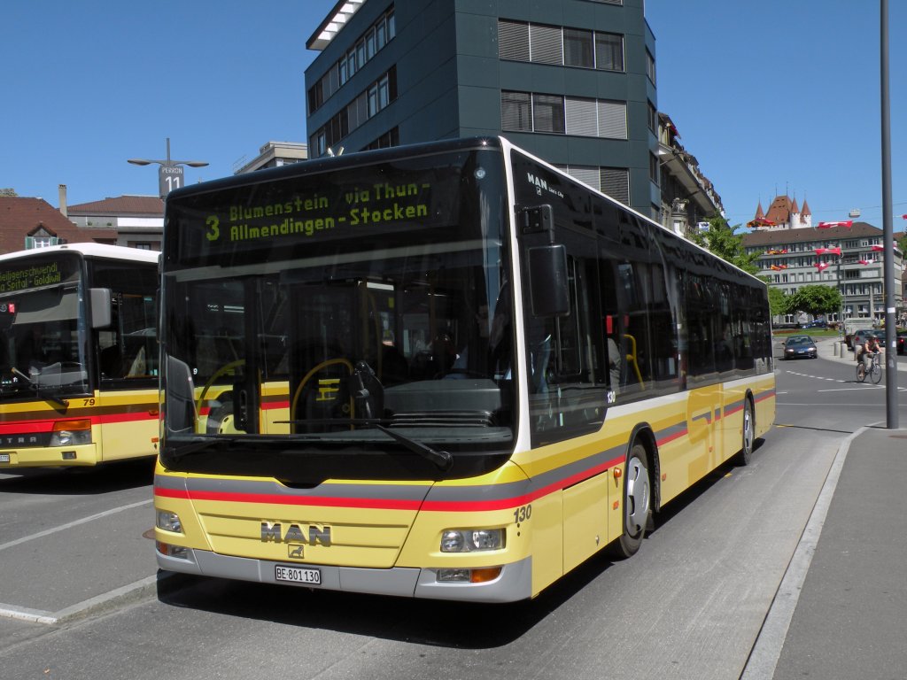 MAN Bus der STI mit der Betriebsnummer 130 am Bahnof Thun. Die Aufnahme stammt vom 18.05.2011.