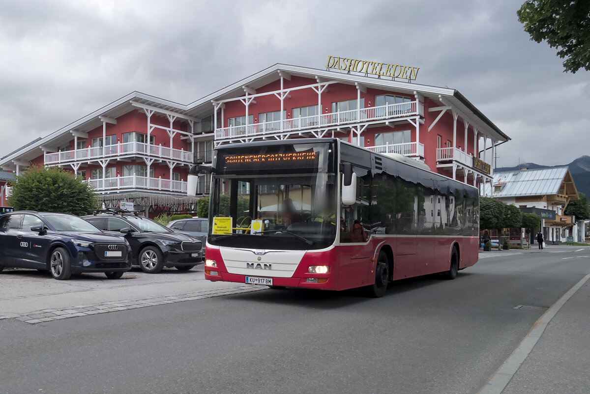 MAN Lion's City (KU-917BM) als Schienenersatzverkehr für die Mittenwaldbahn in Seefeld in Tirol, Münchner Straße. Aufgenommen 29.7.2025.