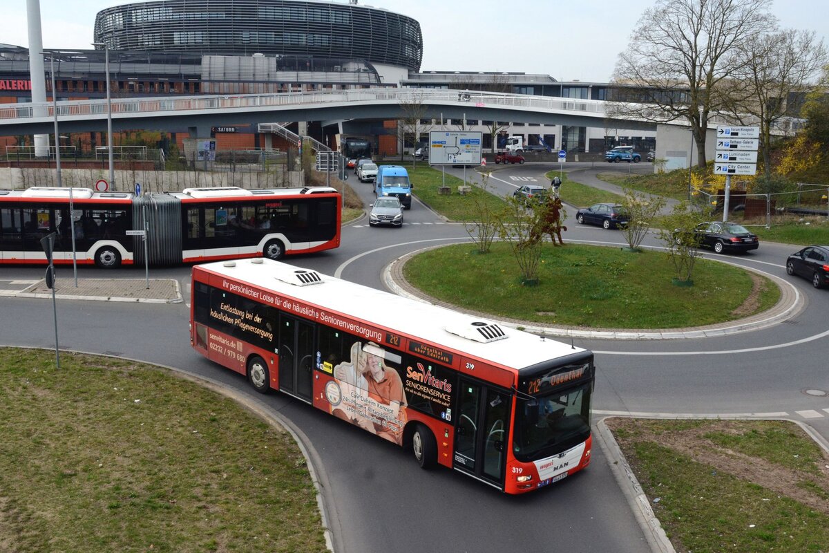 Ossenbach KOM 319 GL-X 870 Linie 212, Odenthal Vollwerbung "SenVitaris" Leverkusen, Bahnhof Mitte 20.03.2026