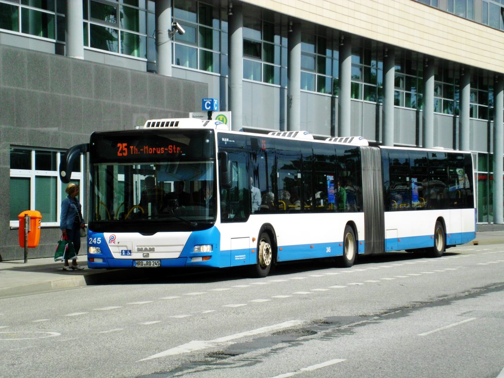 MAN Niederflurbus 3. Generation (Lion's City) auf der Linie 25 nach Rostock-Evershagen Thomas-Morus-Straße an der Haltestelle Rostock-Stadtmitte Schröderplatz.(3.6.2013)