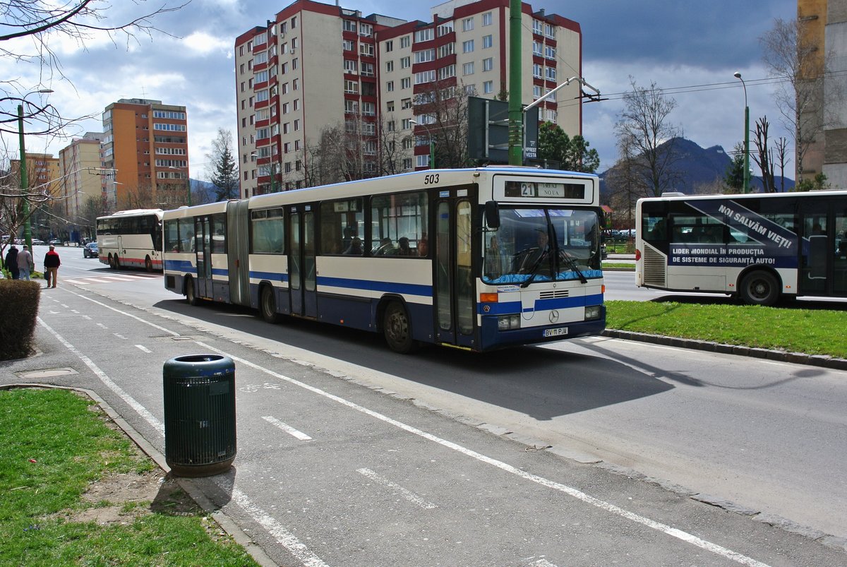 CH Busse in Rumänien: Ex. ZVB 405 G in Brasov, 02.04.2018.