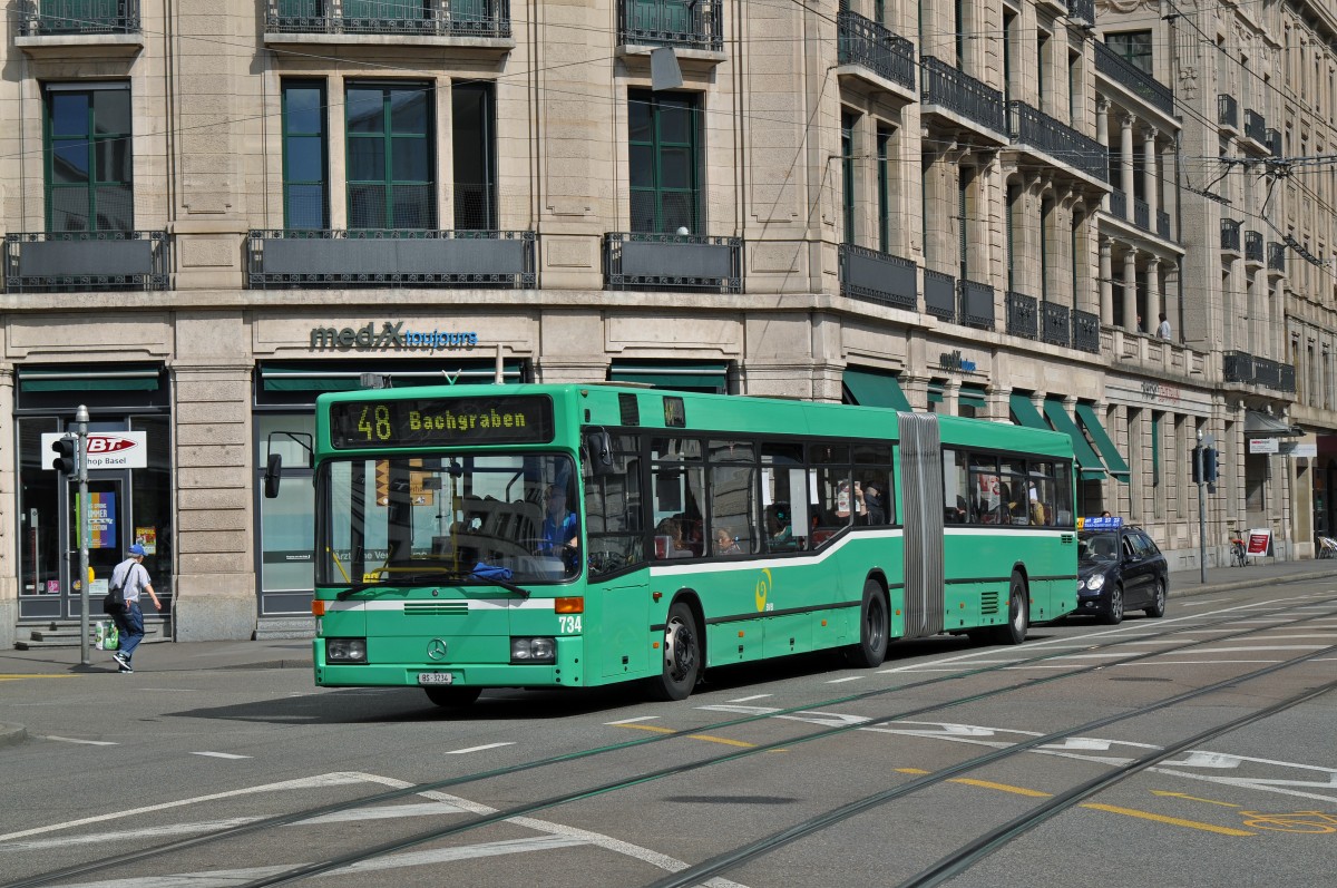 Mercedes O 405 734 auf der Linie 48 fährt zur Haltestelle Schützenhaus. Die Aufnahme stammt vom 06.05.2015.