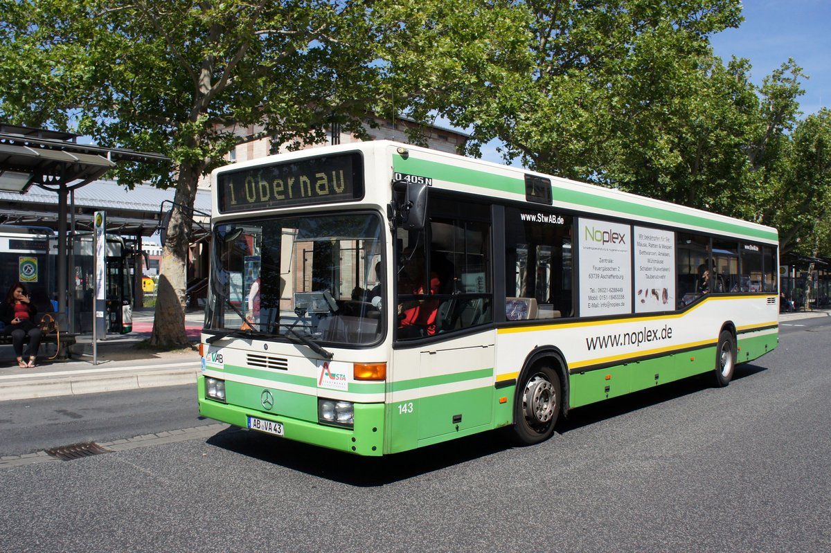Stadtbus Aschaffenburg / Verkehrsgemeinschaft am Bayerischen Untermain (VAB): Mercedes-Benz O 405 N der Stadtwerke Aschaffenburg Verkehrs-GmbH (STWAB), aufgenommen im Juli 2019 am Hauptbahnhof in Aschaffenburg.