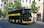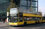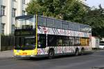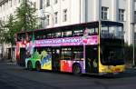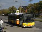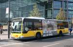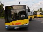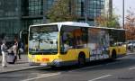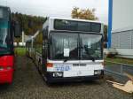 Mercedes O405 736, auf der Linie 34, wurde von Kindern bemalt und steht am 15.03.2010 auf dem Hof der Garage Rankstrasse. Daneben steht der Mercedes Citaro 864 von Bernmobil. Aufnahme Basel.