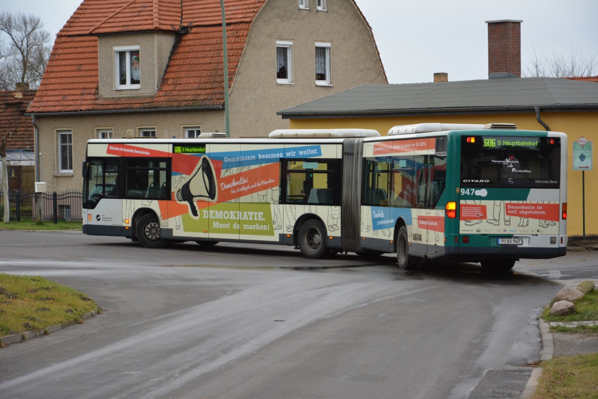 P-AV 947 ist am 13.12.2014 unterwegs auf der Linie 606 nach Alt-Golm. Aufgenommen an der Geiselbergstraße.