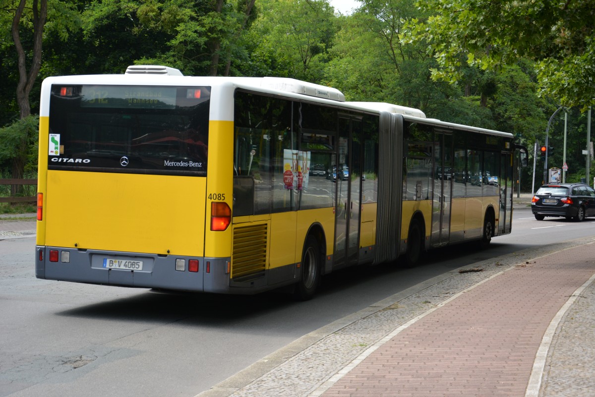 Am 18.07.2015 fährt B-V 4085 auf der Linie 312 zum Strandband Wannsee. Aufgenommen wurde ein Mercedes Benz Citaro / Berlin Am Beelitzhof.