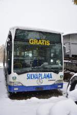Mercedes-Benz O 530 I von POSTBUS, unterwegs auf der SVV-Linie 550 als Skibus 3 (Sportgastein Goldbergbahn - Dorfgastein Lift), am 13.3.2016 bei der Haltestelle Bad Gastein Gemeindesiedlung.