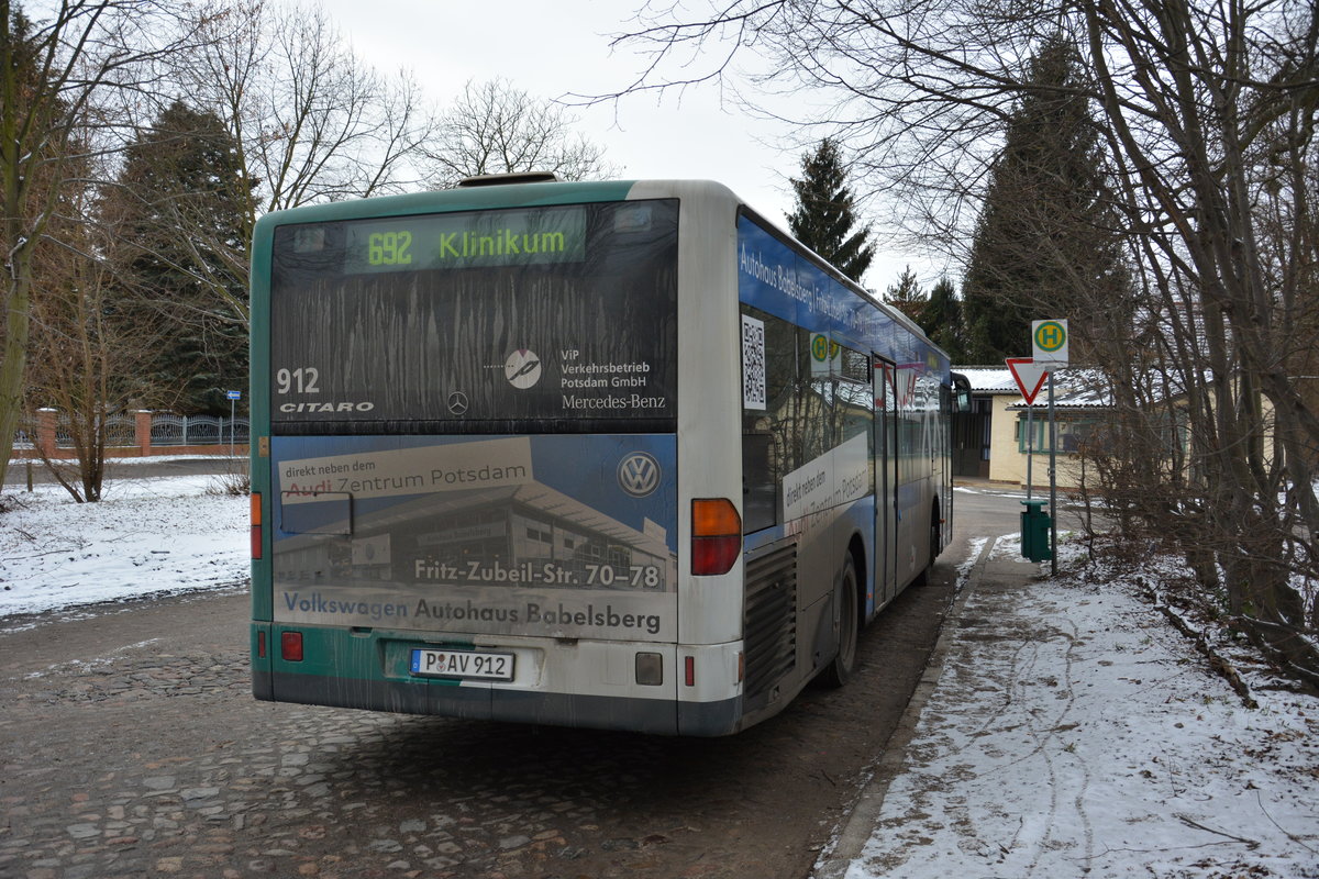 Am 21.01.2016 steht P-AV 912 in Bornim, Institut für Agrartechnik. Aufgenommen wurde ein Mercedes Benz Citaro.