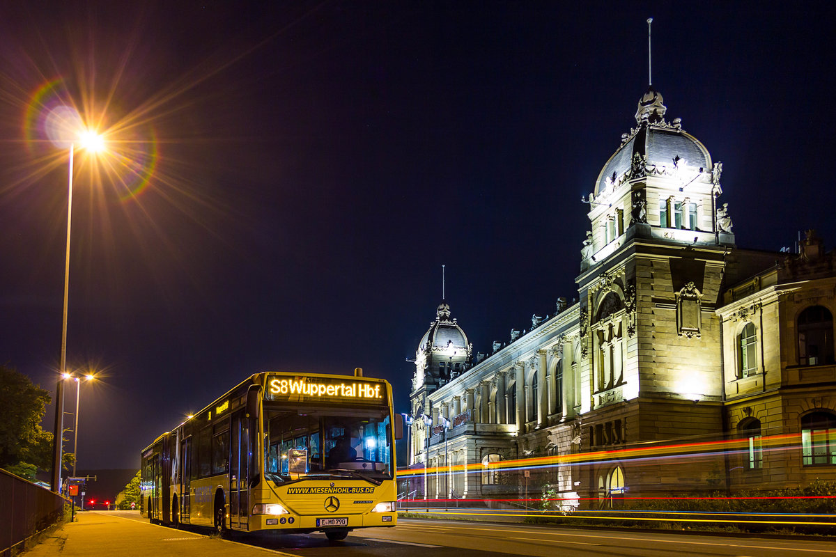 Im Zuge eines Schienenersatzverkehrs auf der S8 zwischen Wuppertal und Hochdahl-Millrath konnte ich E-MO 790, welcher vorher als Wagen 4512 bei der EVAG im Einsatz war, auf dem Pausenplatz am Wuppertaler Hauptbahnhof ablichten. Im Hintergrund ist die historische Stadthalle zu sehen.