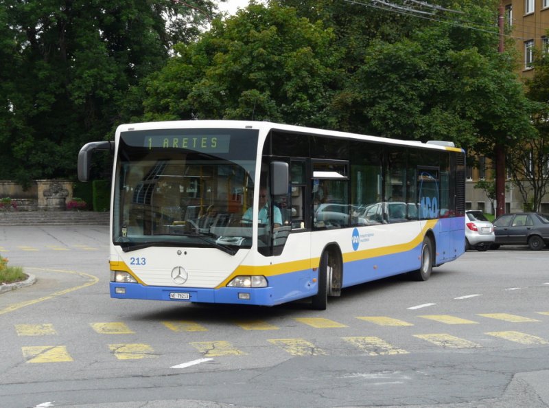 trn La Chaux de Fonds - Mercedes Citaro Nr.213  NE 78213 unterwegs auf der Linie 1 vor dem Bahnhof in La Chaux de Fonds am 04.07.2009