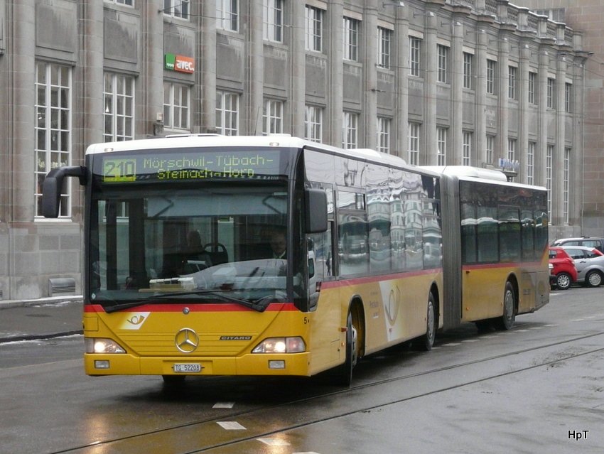 Postauto - Mercedes Citaro TG 52208 unterwegs auf der Linie 210 in der Stadt St.Gallen am 10.01.2010
