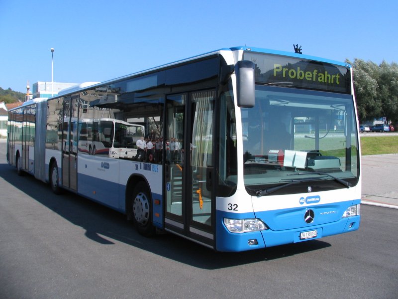 Der neuste Mercedes Citaro Ad Blue (Euro5) der Limmatbus AG im Auftrag der VBZ Züri Linie, auf einem Mitarbeiter Ausflug. Limmatbus hat 2 solcher Citaro im Einsatz Nr. 32 und 33. Diese Citaro verkehren hauptsächlich auf der Linie 303 Farbhof-Schlieren Bahnhof-Killwangen Bahnhof. In den Morgenstunden auch auf der Linie 309 Dietikon Bahnhof-Silbern.