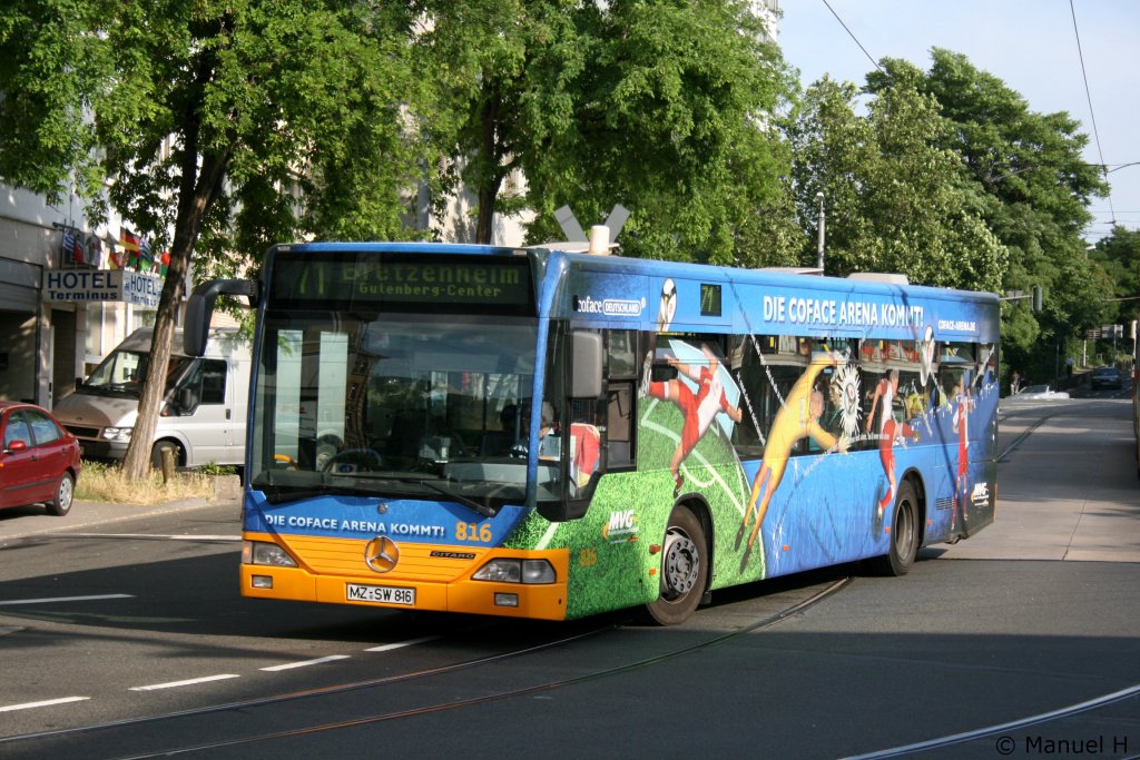 MVG 816 (MZ SW 816) macht Werbung für die Coface Arena.