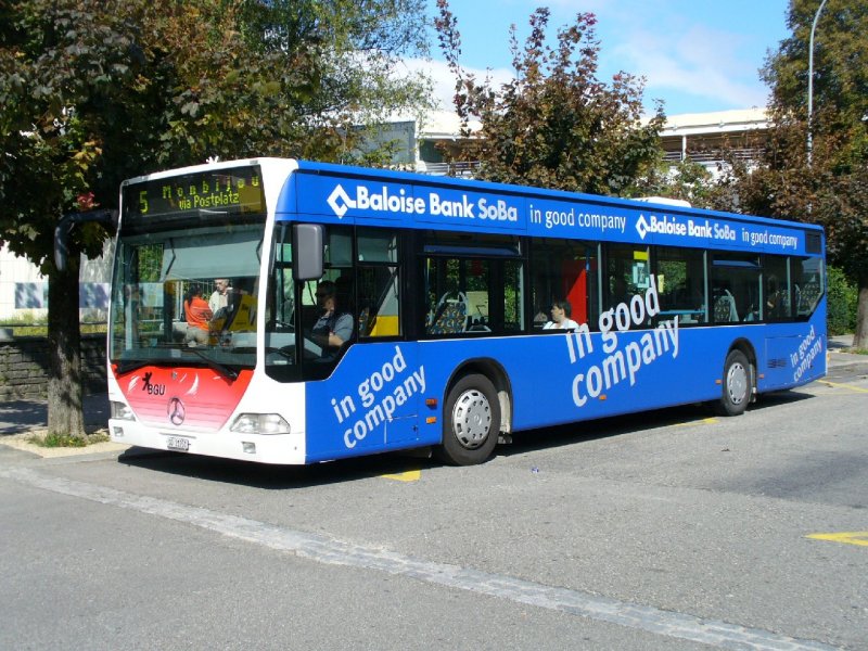 Mercedes Regiobus - Bei der Haltestelle vor dem Süd Bahnhof in Grenchen ist der Mercedes Regiobus Nr.11 SO 21 951 mit Vollwerbung am warten auf Fahrgäst am 07.09.2007