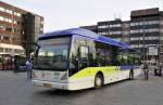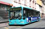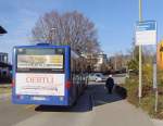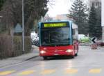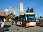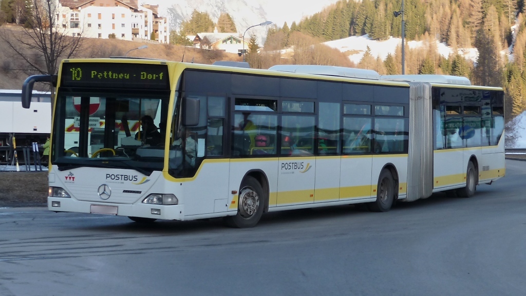 Ein Postbus, MB Citaro O 530 G, jagt in St.Anton am Arlberg um die Kurve auf den Busparkplatz (4.3.11).