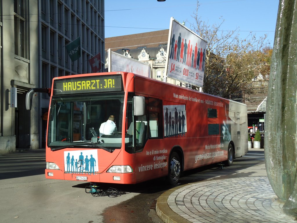 Tschudi, Basel - BE 714'243 - Mercedes Citaro am 20. Oktober 2012 beim Bahnhof St. Gallen (Ausstellungsbus des Vereins Hausarzt: JA!)