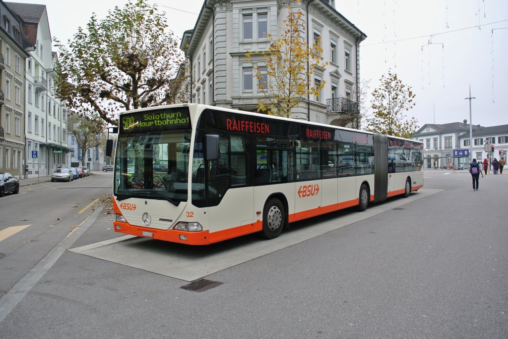 BSU MB Citaro G Nr. 32 abgestellt als Schülerkurs der Linie 500 beim Solothurner Hauptbahnhof. Dieser ist einer von 3 Citaro G der 1. Generation (30-32), welche die BSU beschafften, 15.11.2012