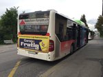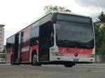 Der stehende C2 Nr. 8 wird vom Citaro Nr. 25 mit Vollwerbung für Erdgas, beim Bhf Süd überholt, am 18.5.2016.