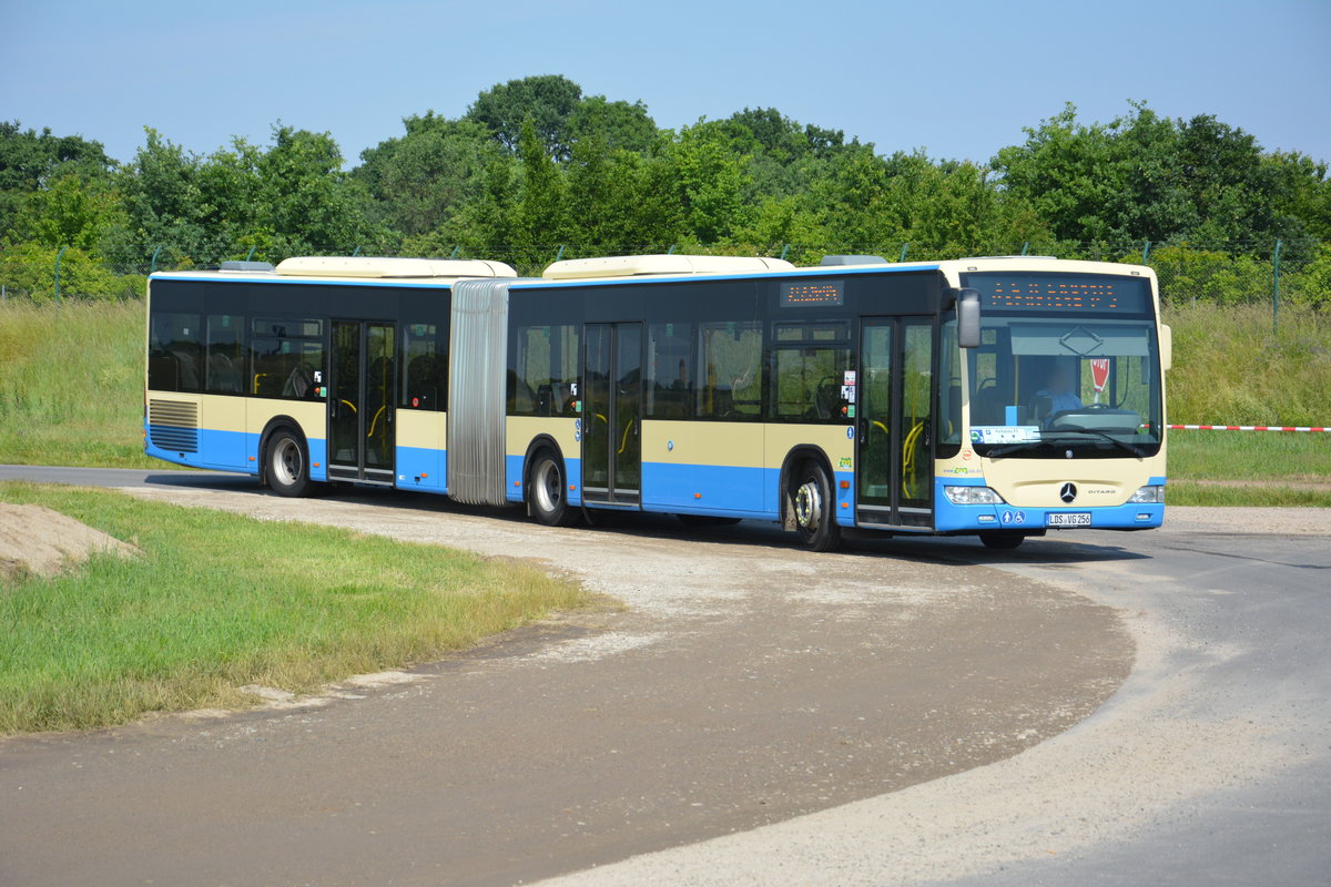 Am 04.06.2016 fährt LDS-VG 256 für die ILA 2016 Shuttle zwischen Parkplatz und ILA-Gelände. Aufgenommen wurde ein Mercedes Benz Citaro G I Facelift der RVS.