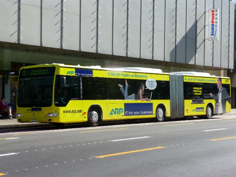 Zugerland - Mercedes Citaro Nr.21 ZG 3371 mit Werbung unterwegs auf der Linie 11 in Zug am 08.09.2008