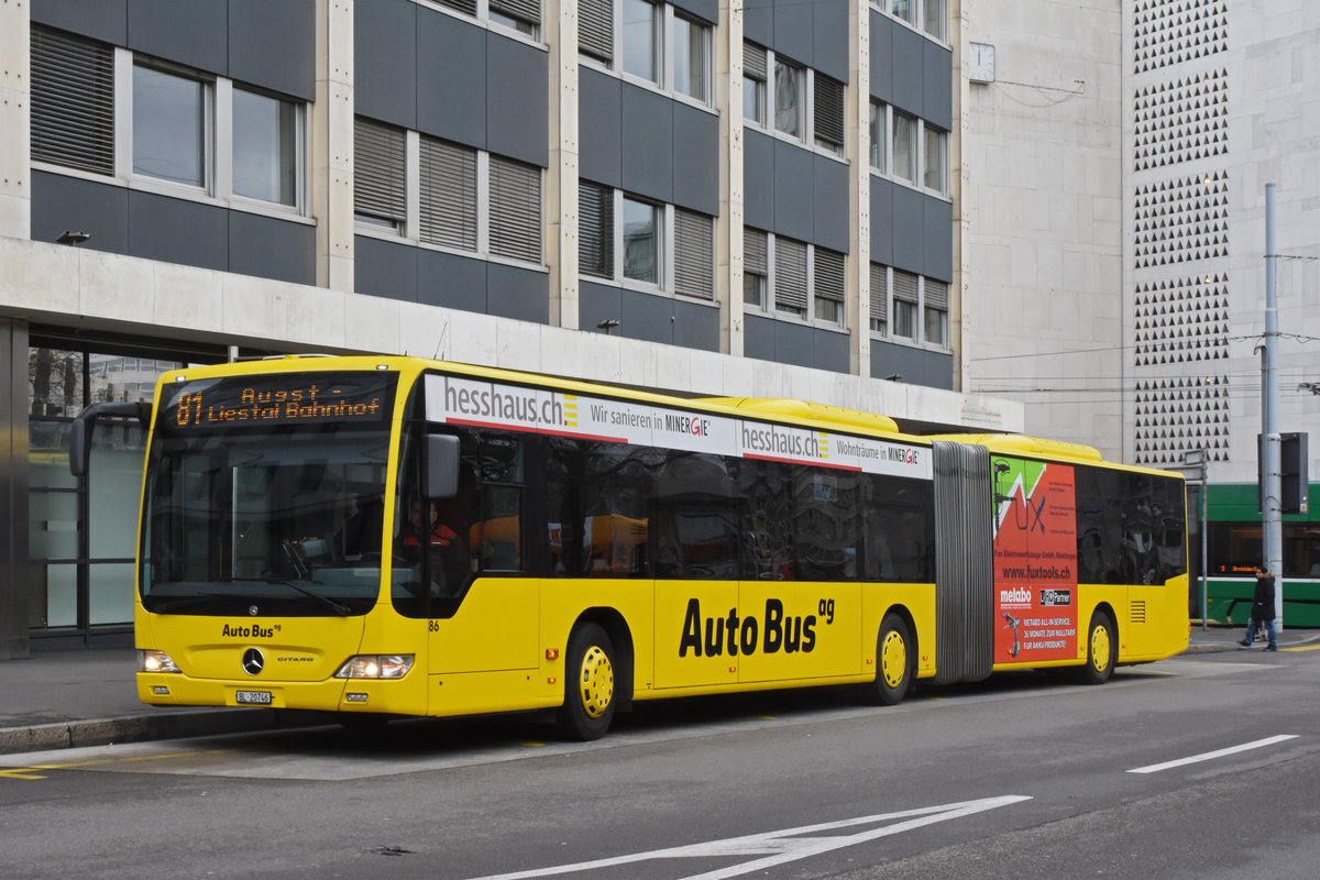 Mercedes Citaro 86 der AAGL, auf der Linie 81, wartet an der Endstation am Aeschenplatz. Die Aufnahme stammt vom 02.01.2019.