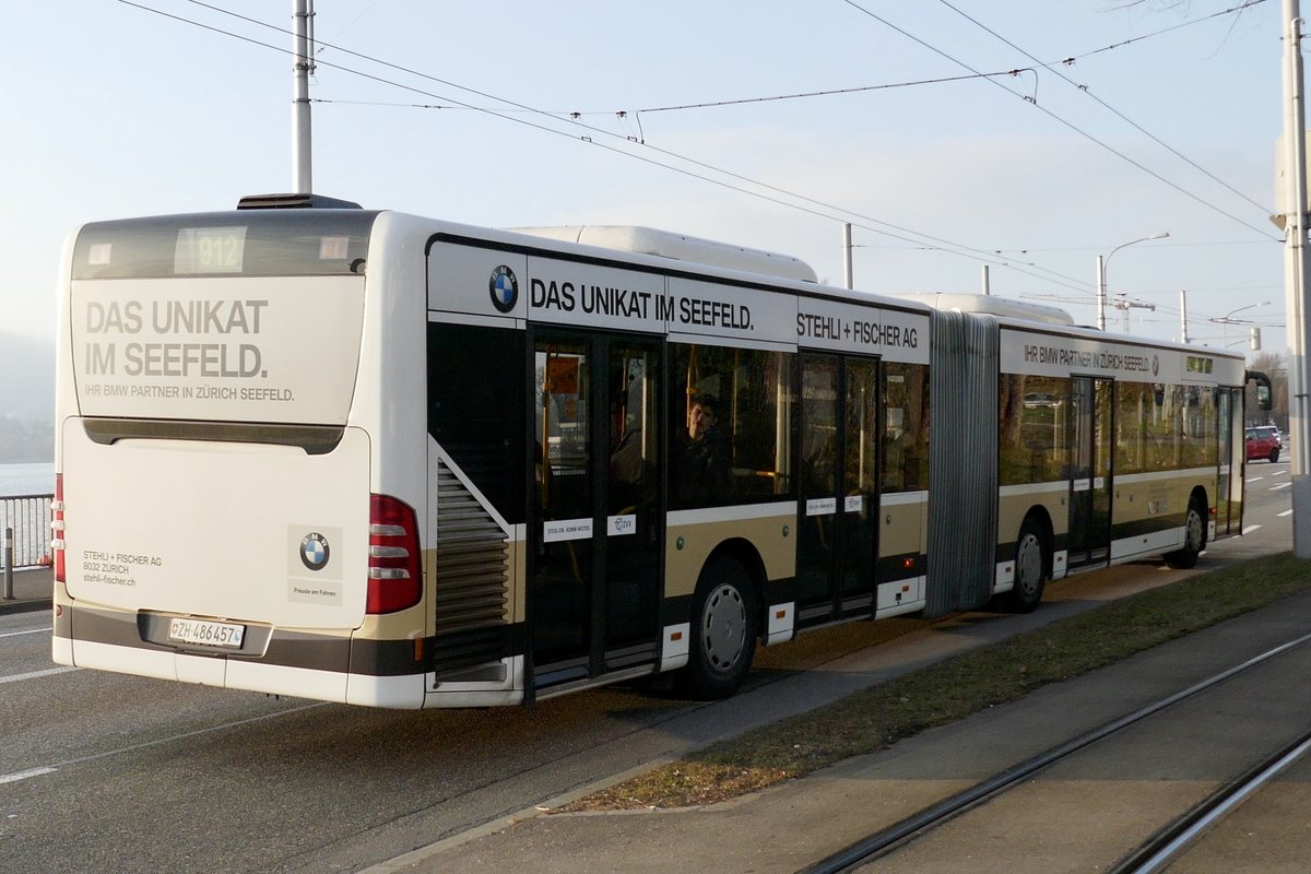 Heckansicht des Citaro Facelift G Nr. 57 des AZZK am 30.12.19 bei der Anfahrt auf den Bahnhofplatz Tiefenbrunnen.
