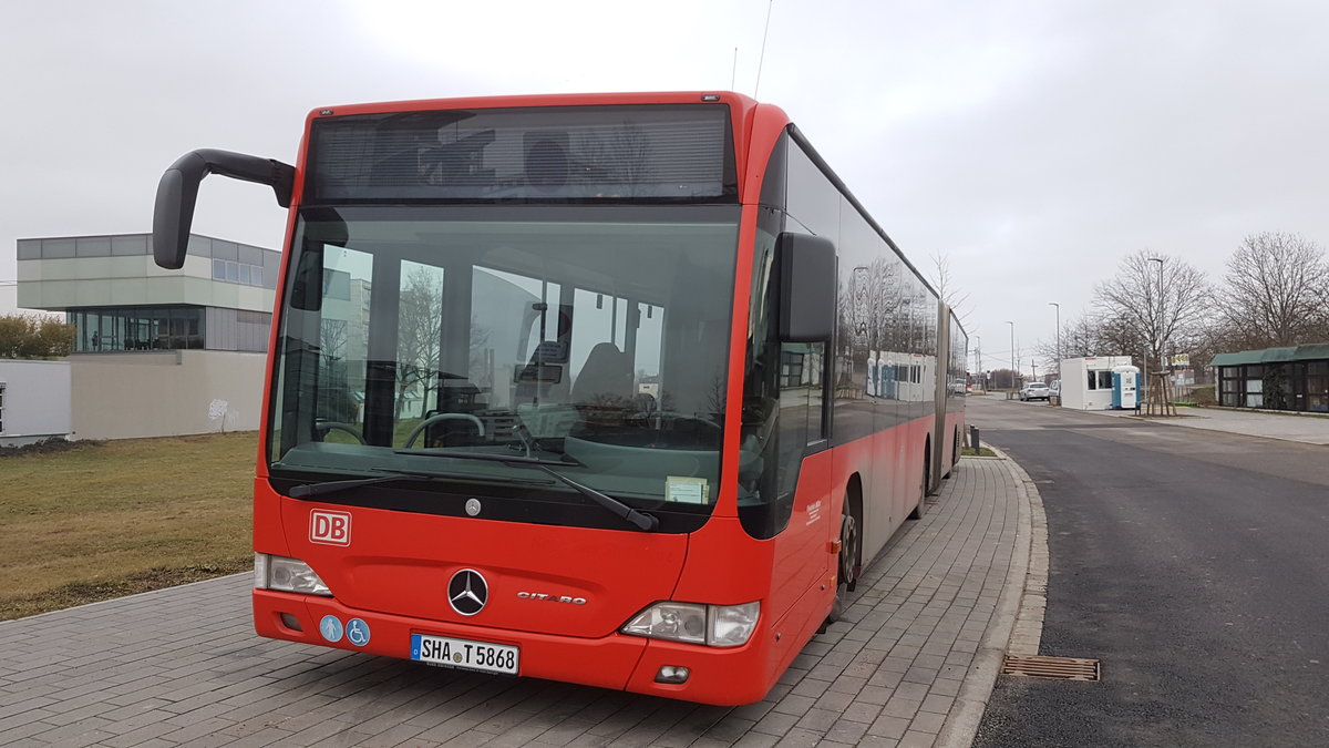 Hier wartet der SHA T 5868 (ex RBS, Stuttgart) von der FMO auf einen neuen Einsatz im Schulverkehr. Gesichtet am 12.01.2020 am Vorübergehenden FMO Busparkplatz in Leinfelden.
