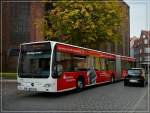 Heckansicht eines Mercedes Citaro der VVR in Stralsund auf dem Olaf-Palme Platz am 22. September 2020.