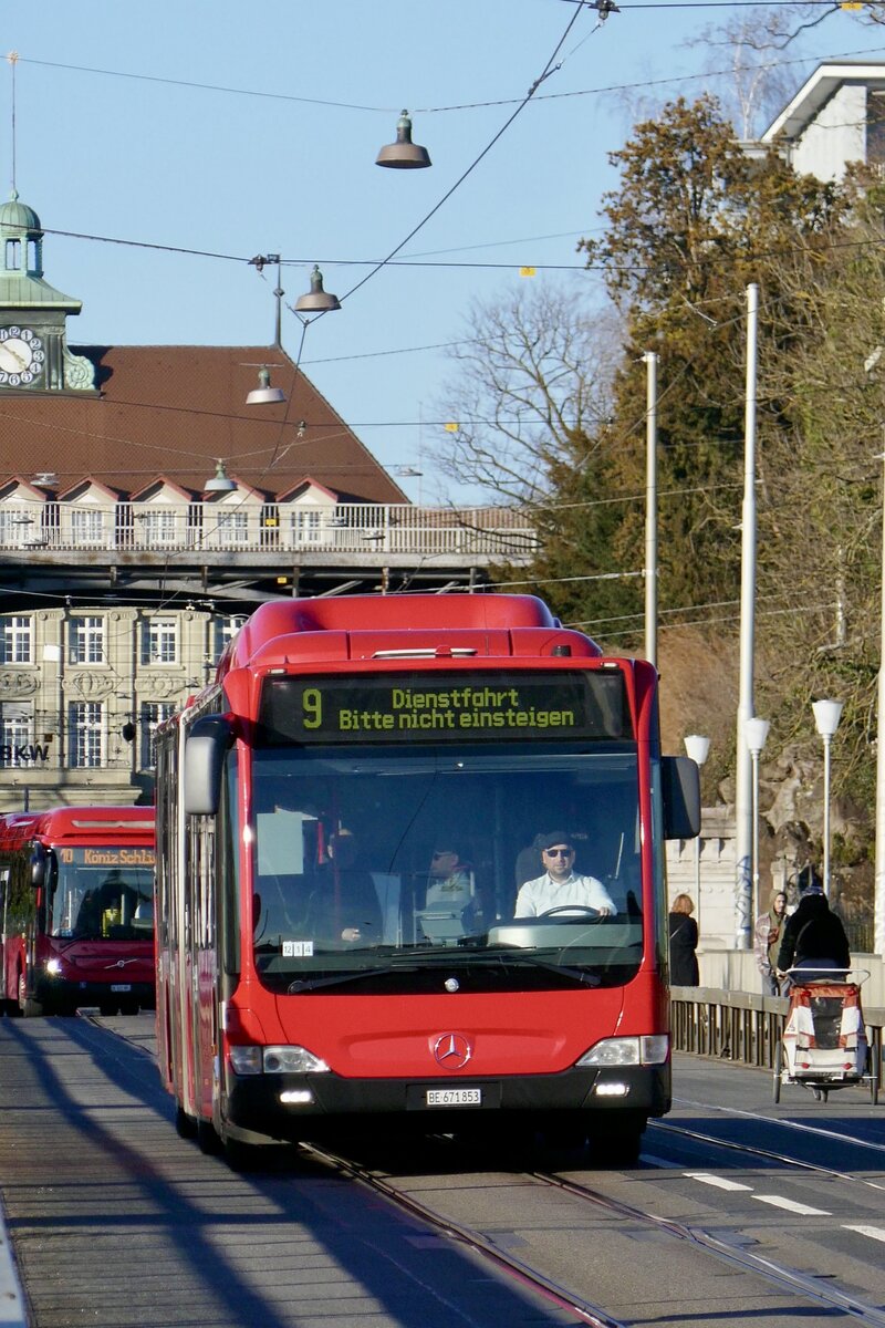 BERNMOBIL MB Citaro Facelift CNG 853 am 26.2.22 auf der Kornhausbrücke.