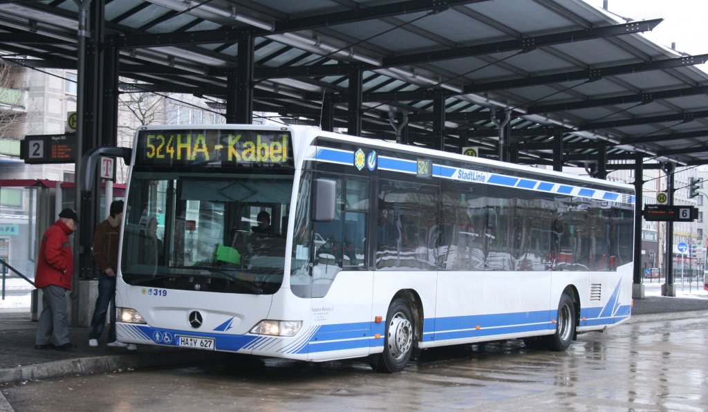 Sander Reisen 319 (HA Y 627) mit der Linie 524 am HBF Hagen,31.1.2010.