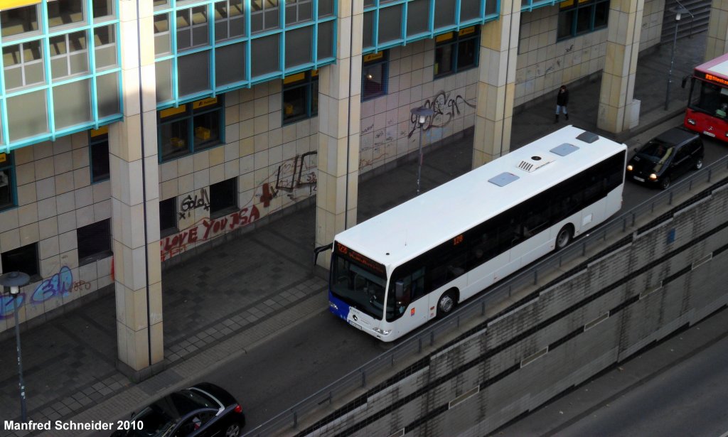 Einer der neuen Citaro Busse verlässt die Haltestelle Saarbrücken Hauptbahnhof.Das Bild habe ich am 26.10.2010 gemacht.
