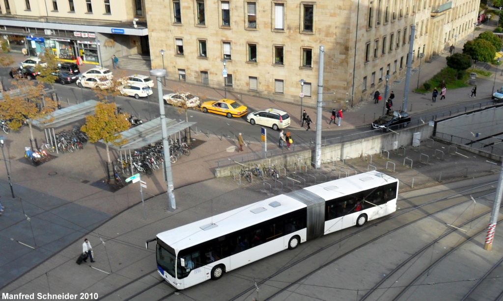 Citaro Gelenkbus fährt seine Haltestelle an. Das Bild habe ich am 26.10.2010 gemacht.