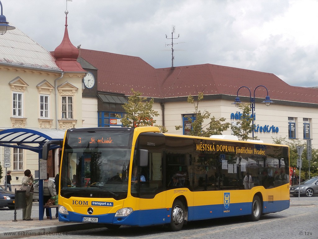 Der einige neue Citaro ist bei ČSAD Jindřichův Hradec. Der Wagen wurde auf der Stadtlinie 3, Haltstelle Masarykovo náměstí in Jindřichův Hradec fotografiert. (20.6.2014)