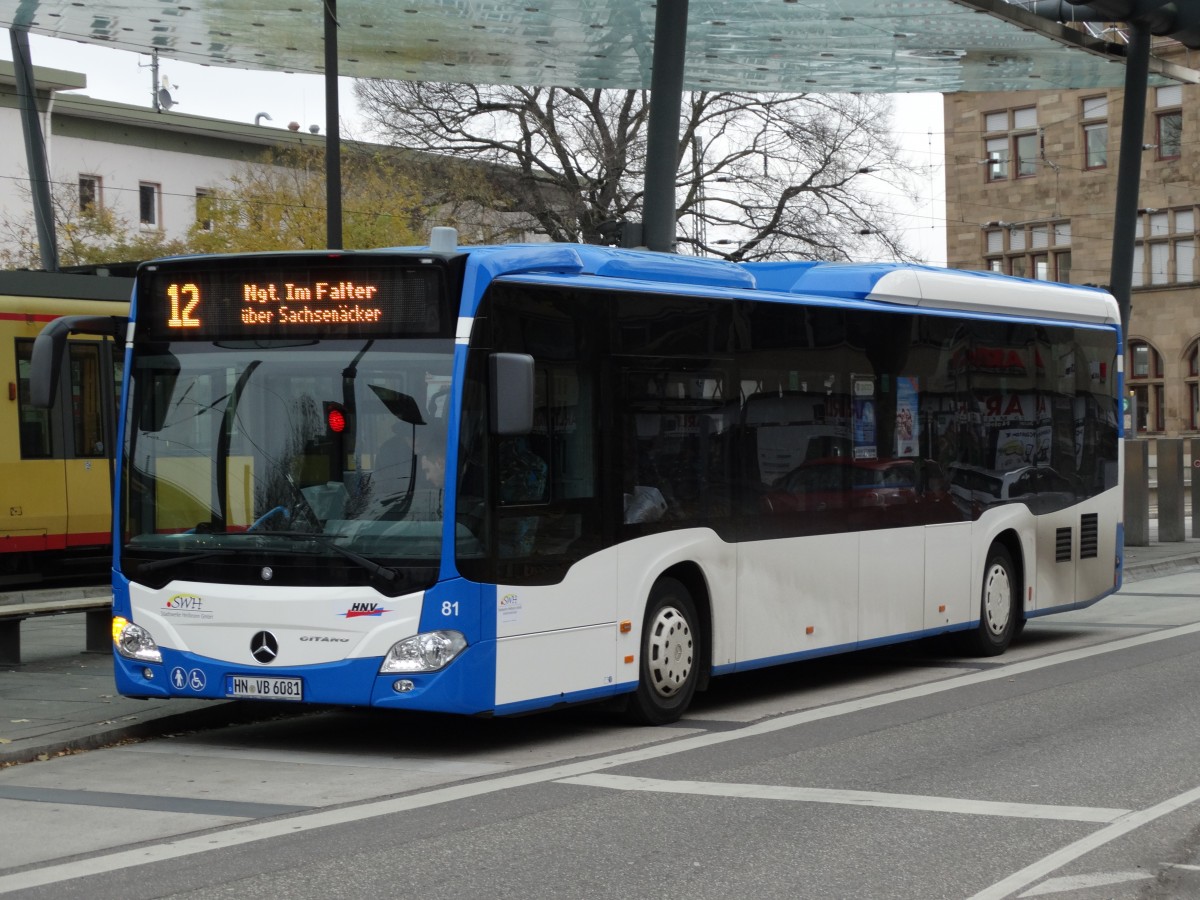 Ein neuer SWH (Stadtwerke Heilbronn) Mercedes Benz Citaro C2 (Wagen 81) am 04.12.14 in Heilbronn Hbf